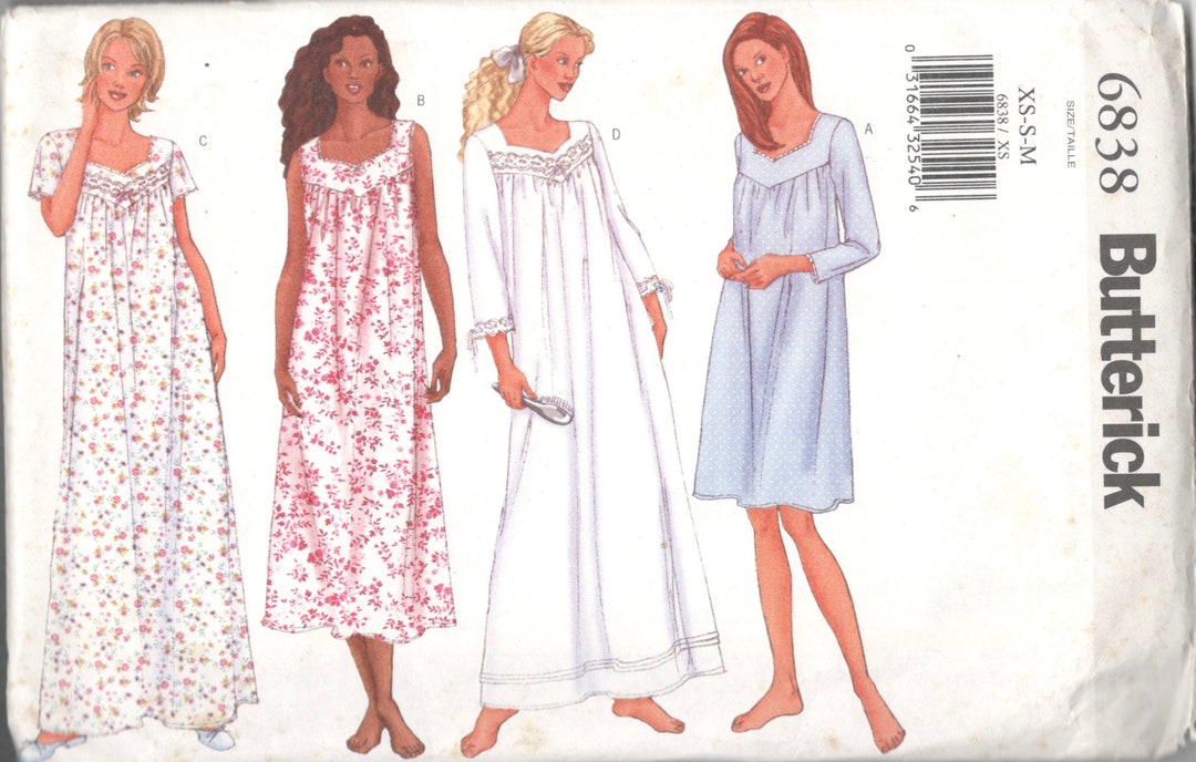 Butterick 6838 Shaped Neckline Pullover Nightgown Pattern 3 Etsy Canada
